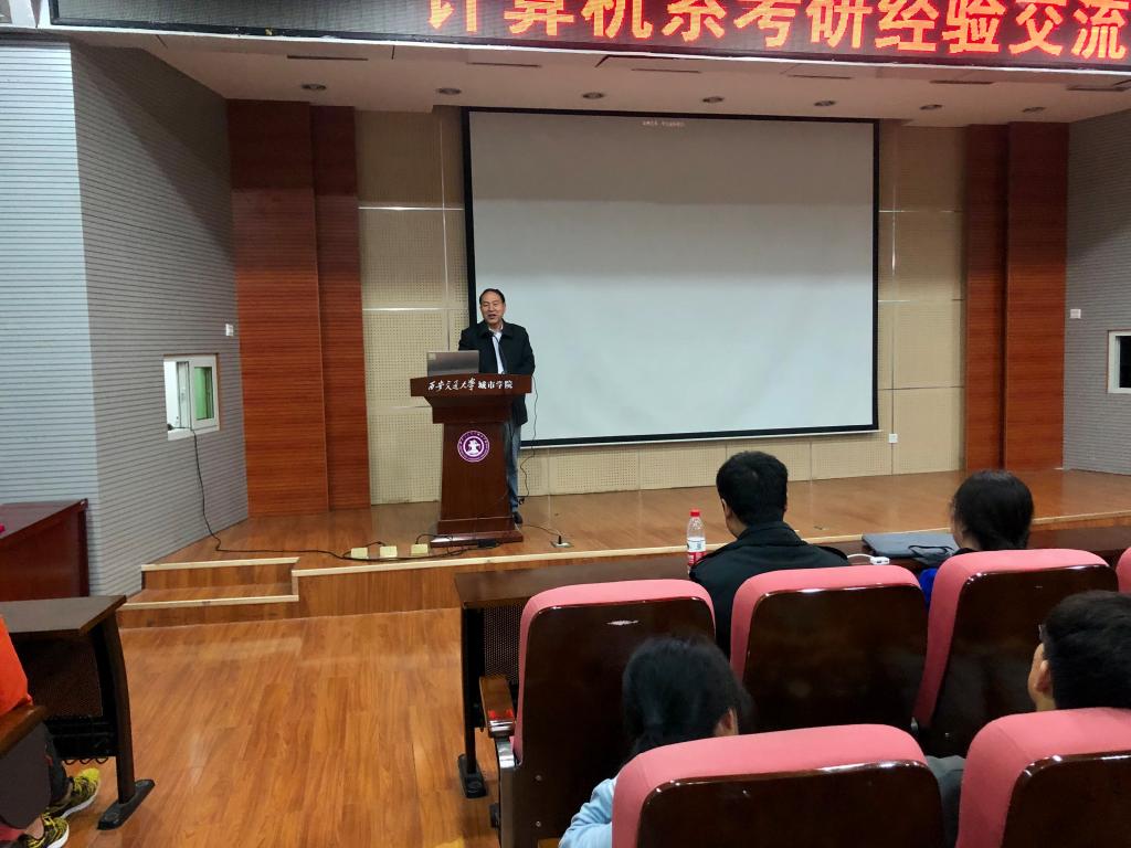 为进一步助力计算机系考研工作,协助学生明确考研目标、掌握考研学习规划,计算机系于4月20日晚在F100举行考研经验分享交流会。本次经验分享交流会特邀到西安交通大学数学学院张改英教授、外国语学院赵亚军教授,系主任缪相林、系副主任许大炜、办公室主任李敬伟以及全系考研学生出席会议,系学生工作负责人刘敏涛主持会议。