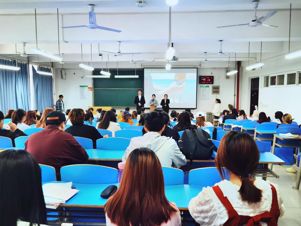 活动开始,由经济系各年级学生组成的三支队伍进行了精彩绝伦的全英文产品模拟发布会。参赛产品涉及数码产品、食品以及智能家居三个不同领域。选手们准备充分、精神饱满,默契配合,在各自项目中充分发挥了自己的创新能力、协作能力和英语表达能力,全方位展示产品性能及优势。模拟发布会结束后,评委老师从选手台风、团队合作、英语口语以及视频制作等方面提出了问题,并给出针对性的建议。