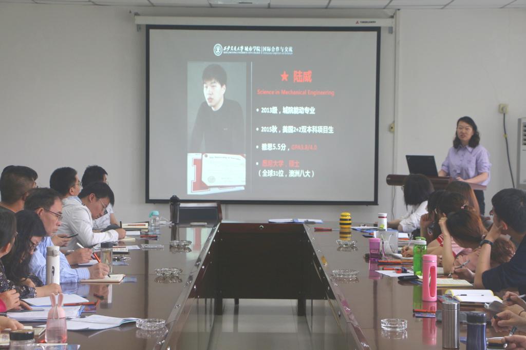 人事服务中心外事办公室孙晓通过展示历届机械工程系优秀交流生案例,简要介绍了学院目前针对机械工程系学生出国留学的3+1+2本硕直读、2+2双本科、短期公费学期交流以及雅思语言班等国际课程合作项目,以此为招生契机,吸引更多学生利用黄金跳板机会到世界名校深造,接受高水平国际教育,成长为一名具有全球竞争力的国际化人才。
