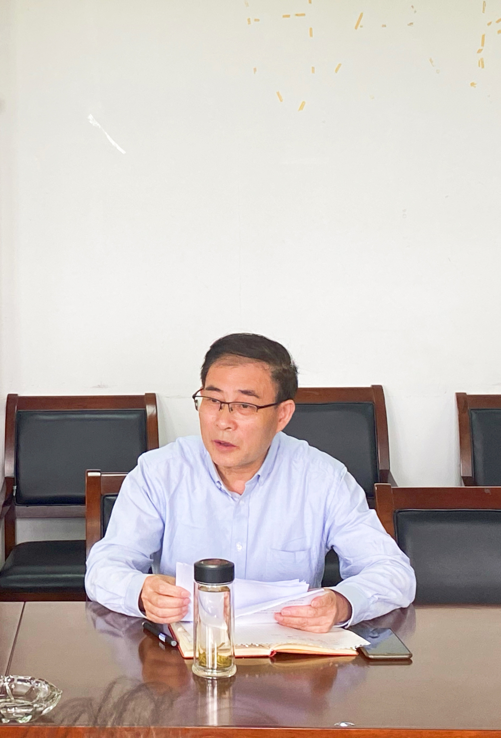 其次,实验室主任王国平,分别从实验室课堂教学秩序、实验报告批改、安全检查、线路改造等方面,对实验室运行环节进行了汇报。