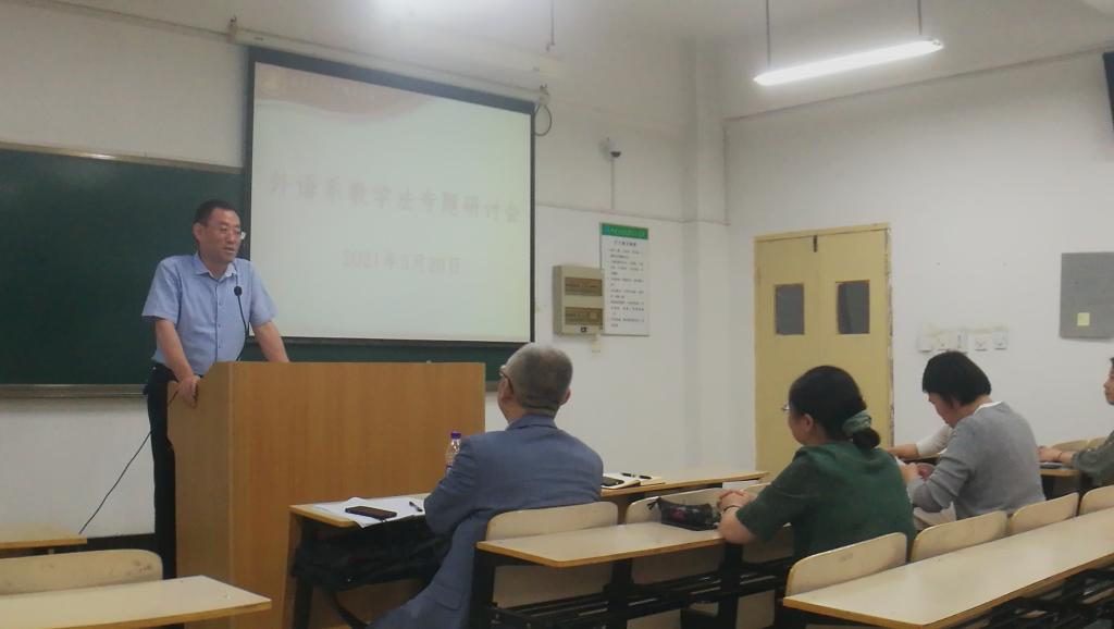 为不断提高教育教学质量,改进教学方法和教学理念,5月28日下午,威尼斯7798cc外语系在教学楼B319教室召开了由全系教师参加的教学法专题研讨会。会议由外语系副主任巫奕君副教授主持,学院教学督导组专家田鹏教授莅临指导。