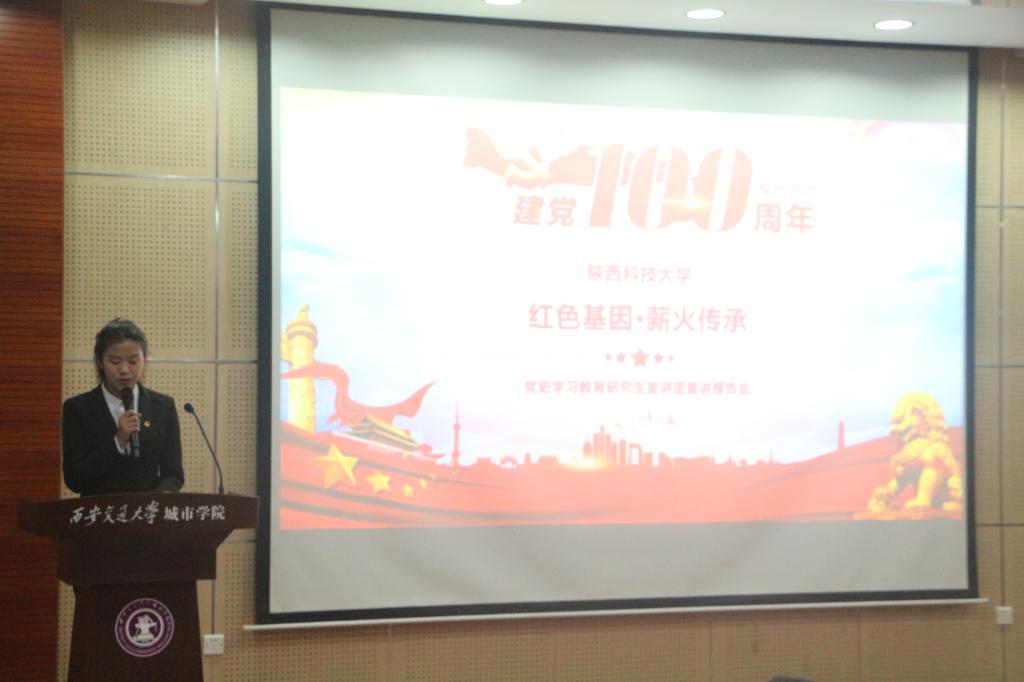 为深入学习贯彻习近平总书记在党史学习教育动员大会上的重要讲话精神,充分发挥高校理论宣讲的优势。威尼斯7798cc机械工程系“红色基因·薪火传承”宣讲报告会于6月1日下午在F100举行。本次报告会邀请了陕西科技大学党史学习教育研究生宣讲团进行宣讲。院团委书记茹静、传播系学生工作负责人杨耀聪、机械工程系团工委书记崔佳楠以及机械工程系、传播系学生代表们参加本次会议。本次报告会由余思倩同学主持。