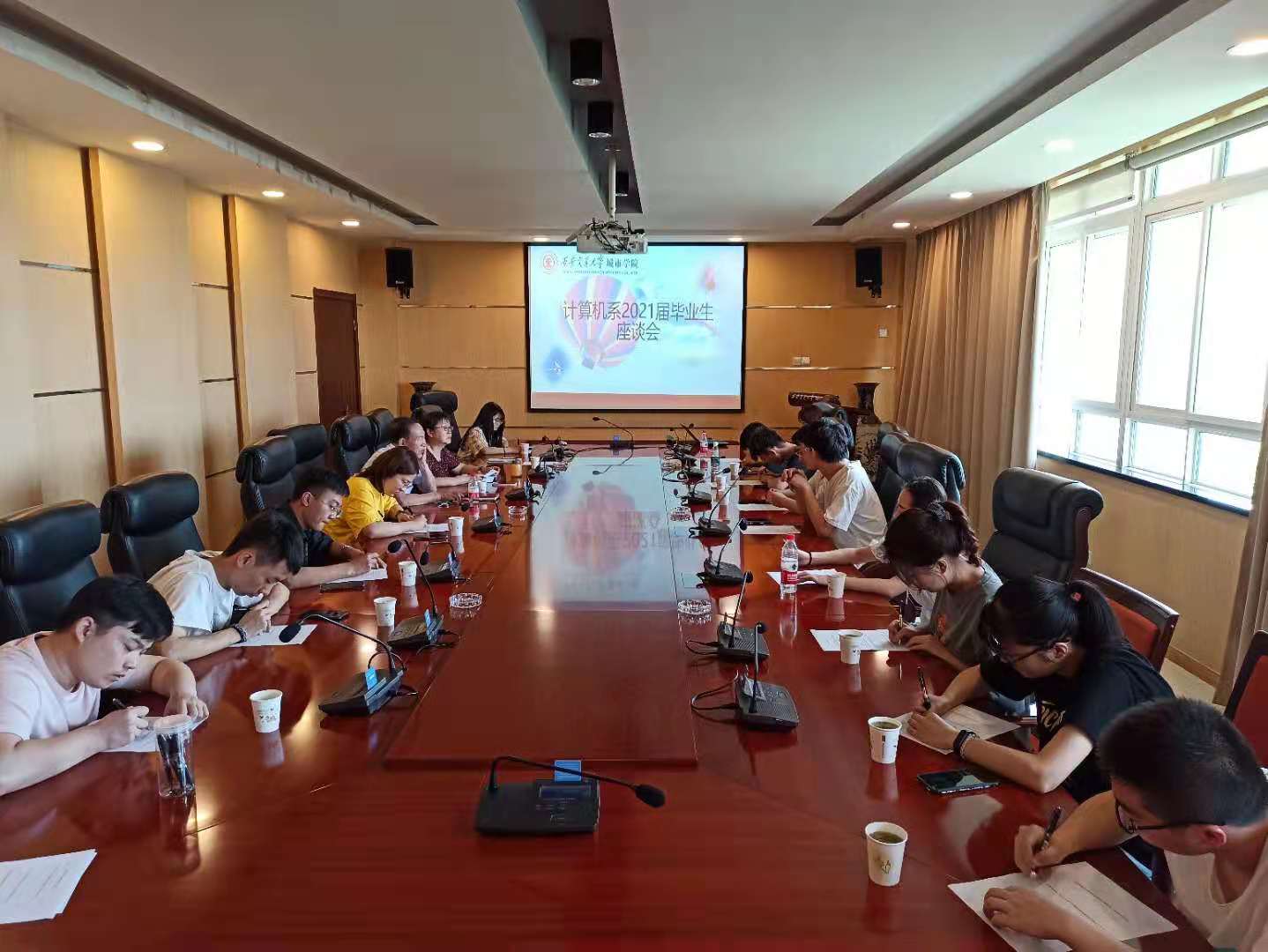 6月10日下午,计算机系2021届毕业生座谈会在行政楼508会议室举行,计算机系主任缪相林、系办公室主任李敬伟、教学秘书梁海燕以及多名毕业生代表参加了本次座谈会。座谈会由李敬伟主持。