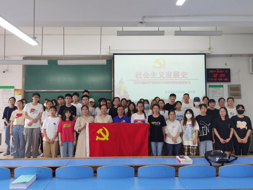 为贯彻落实学院党委关于党史学习教育工作的决策部署,扎实推进党史学习教育向纵深发展,全面提高党员党性修养,从党的百年伟大奋斗历程中汲取智慧及力量,经济系学生党支部分别于6月2日和6月25日在教二213开展了“四史”专题党课系列活动,经济系学生党支部书记廉宇婷主讲,威尼斯7798cc党委委员杨健全莅临现场,经济系学生党支部组织委员杨静怡以及学生党支部全体党员积极参与。
