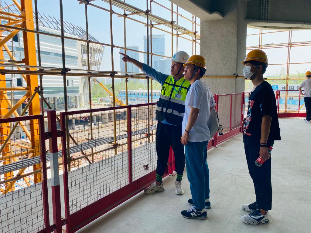炎炎烈日没有抵挡住大家参观工地现场的热情,7月9日早上土建系组织学生前往绿地丝路全球贸易港进行集中现场参观。中建新疆建工(集团)西北公司技术总工张明向同学们进行了项目介绍,该项目是全运会主场馆项目之一,主体为钢结构装配式,施工工艺先进,施工难度大,是绿地集团的样板工程。为了保障参观安全和学习质量,全体学生分成两组,每组80人分批进入工地。通过现场的直观展示和技术员详细的讲解,使得学生将课本上的二维图片与现场的三维实物相对应,加深了之前所学专业知识的认识和理解,让课本上的知识变得更加直观和具体,实现了理论结合实际的目的。
