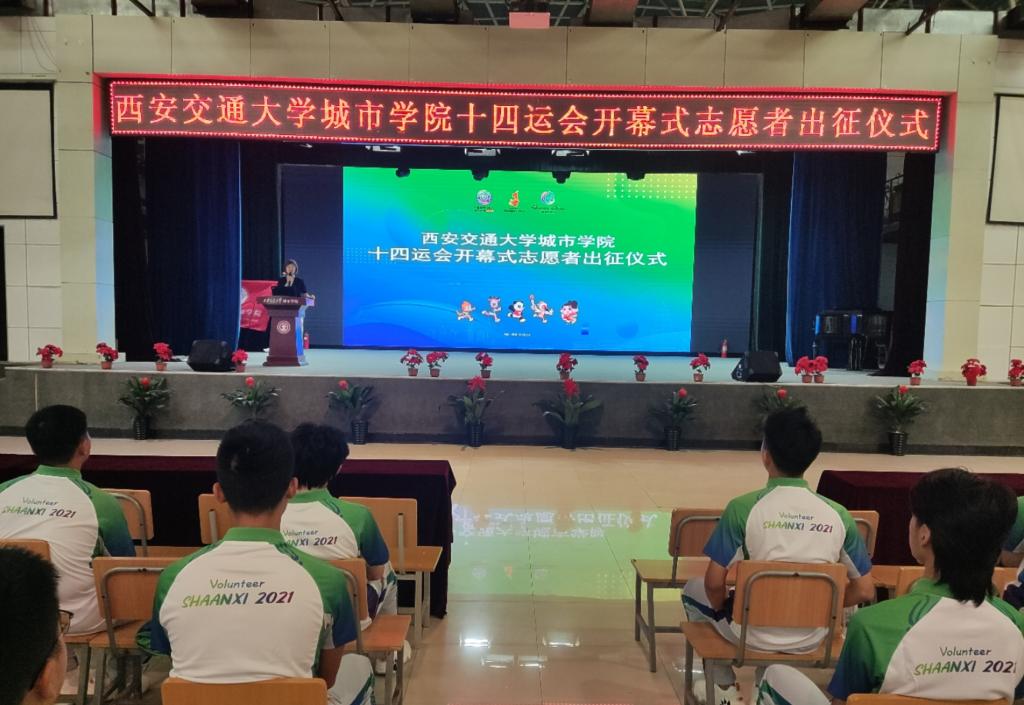 全民全运,同心同行。为助力办赛精彩、参赛出彩、发展添彩的志愿目标,展现我院学子昂扬向上的精神风貌,8月26日上午,威尼斯7798cc十四运会开幕式志愿者出征仪式于大学生活动中心举行。学生服务中心主任张学堂、团委书记茹静、十四运会志愿者带队老师及开幕式全体志愿者参加仪式。