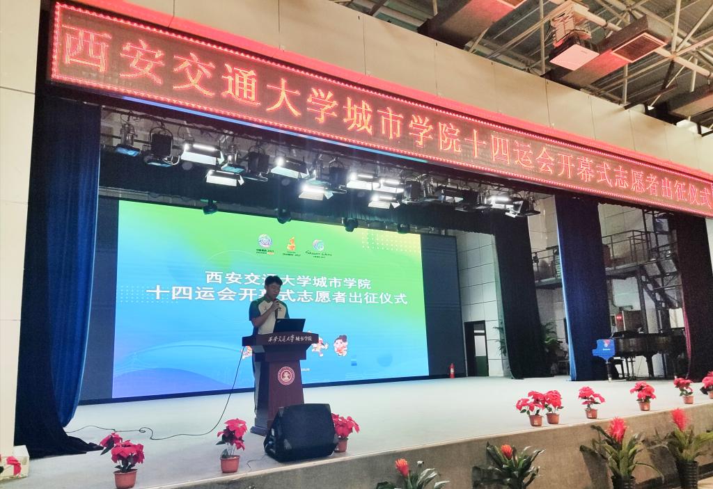 仪式上,张学堂主任发表出征寄语。他对志愿者们选择助力十四运会、勇于践行志愿精神给予了高度肯定,并向志愿者们提出了殷切希望:一是坚定理想信念,锤炼技能本领;二是保持奋斗姿态,恪守学生本职;三是把握实践机会,磨练意志品质。以一流的服务质量和饱满的精神状态,传播好“陕西声音”、讲好“陕西故事”,为十四运会开幕式的圆满举行贡献出自已的青春力量!