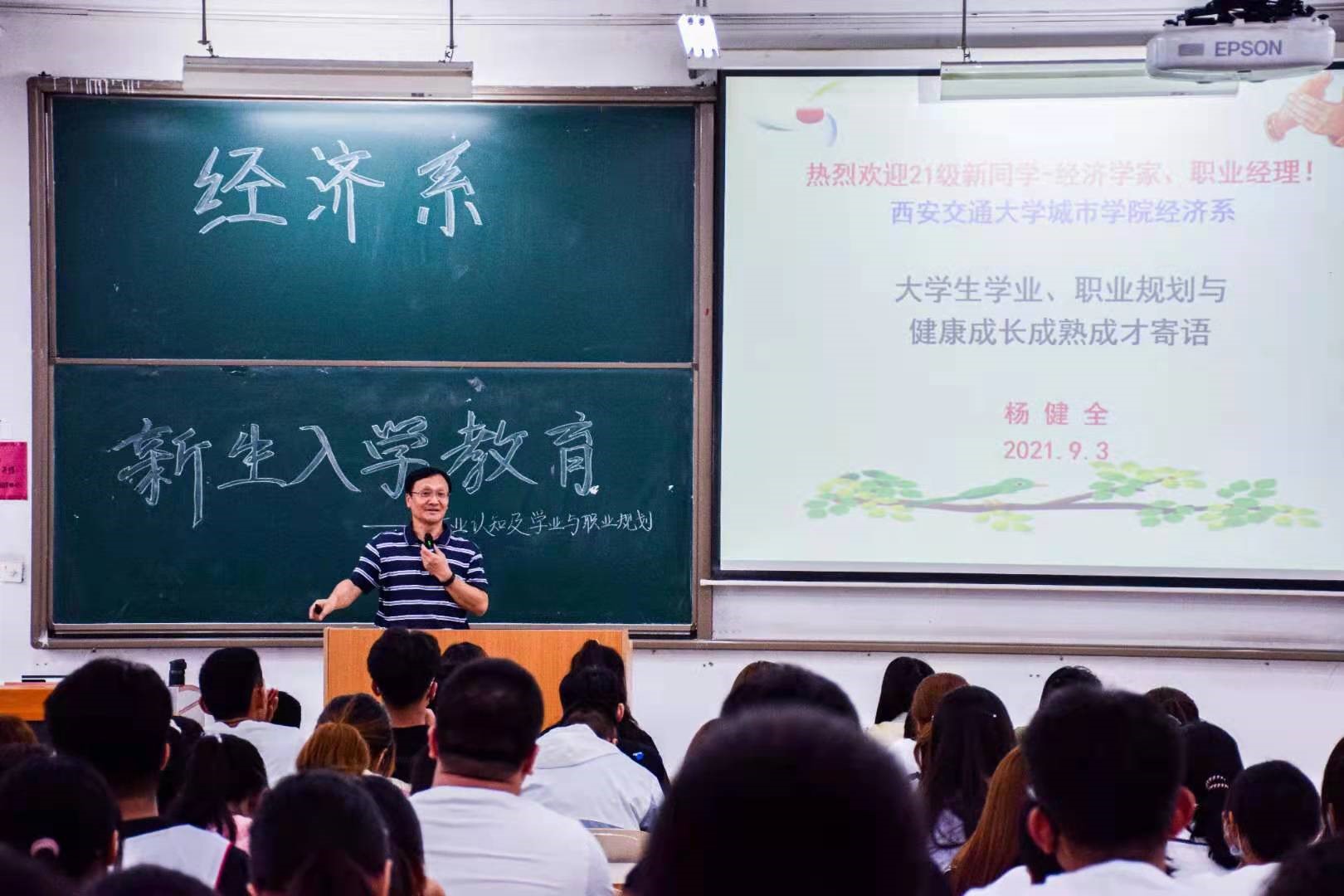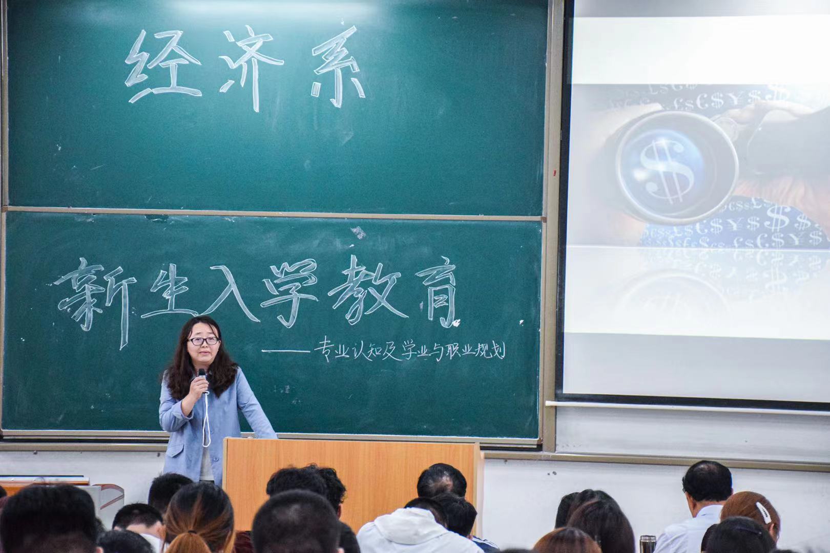9月3日上午,本次活动以带领新生熟悉校园为开端,随后于D100开展了专业认知教育、学业与职业规划。首先张文科主任对于新生的到来表示了热烈的欢迎,并对经济系的基本情况进行介绍,各专业负责人对其专业体系、内容展开详细的讲解。随后杨健全副主任就学业与职业规划展开讲述,希望同学们可以提前做好规划,有计划、有目标,不打无准备之仗,不负韶华。