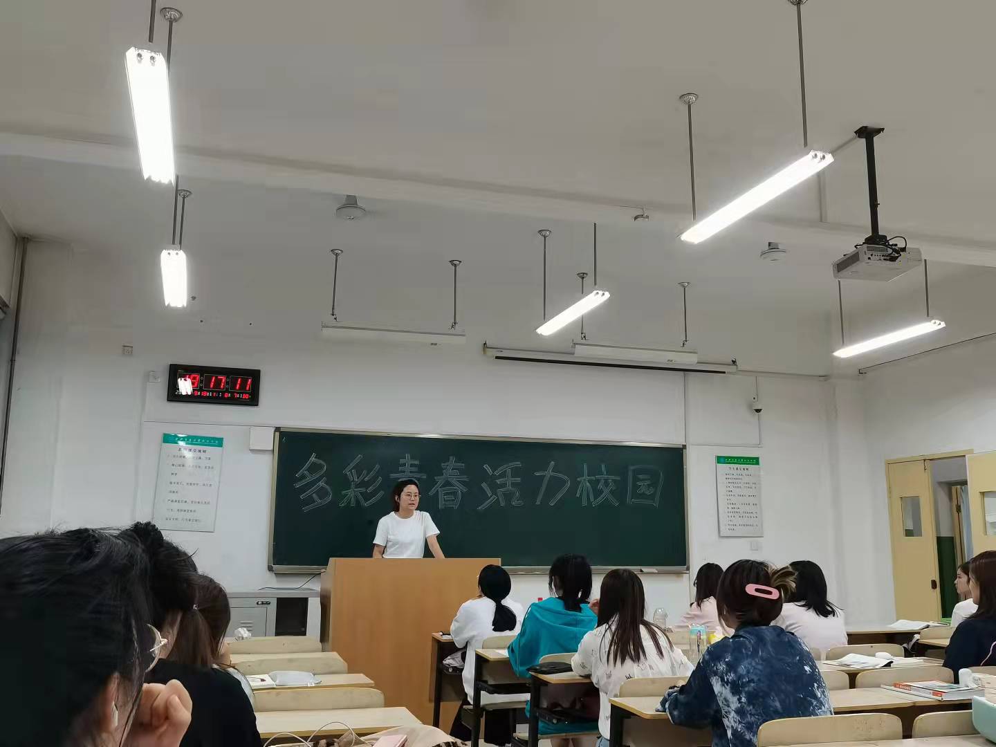 为促进学生文明行为习惯养成,端正学习态度,引导学生健康成长,推进班风、学风建设,外语系于9月14至15日在大一、大二年级各班召开学生日常管理推进会,就早晚自习要求、宿舍环境、日常锻炼、课堂秩序、文明行为等问题进行规范化管理,同时开展“多彩青春活力校园”启动仪式,本次活动由低年级辅导员韩蓉主持,大一、大二全体学生参加。