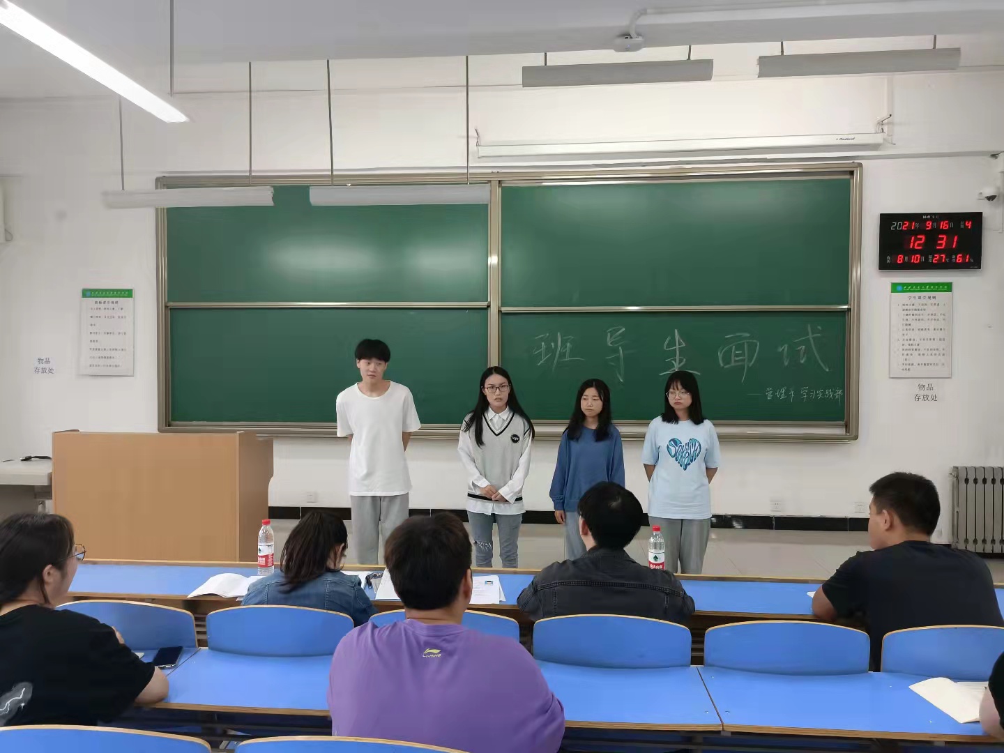 西安交大威尼斯7798cc管理系班导生自2018年起正式投入实践,并以党团结合的模式采用一批优秀的高年级学生对大一新生进行一对多帮扶管理,助力于系好大学生活第一粒纽扣。管理系于9月16日在教二413举行了管理系第四届班导生竞选活动,出席本次面试会的老师有管理系团学负责人吴江菊和辅导员柯智航。