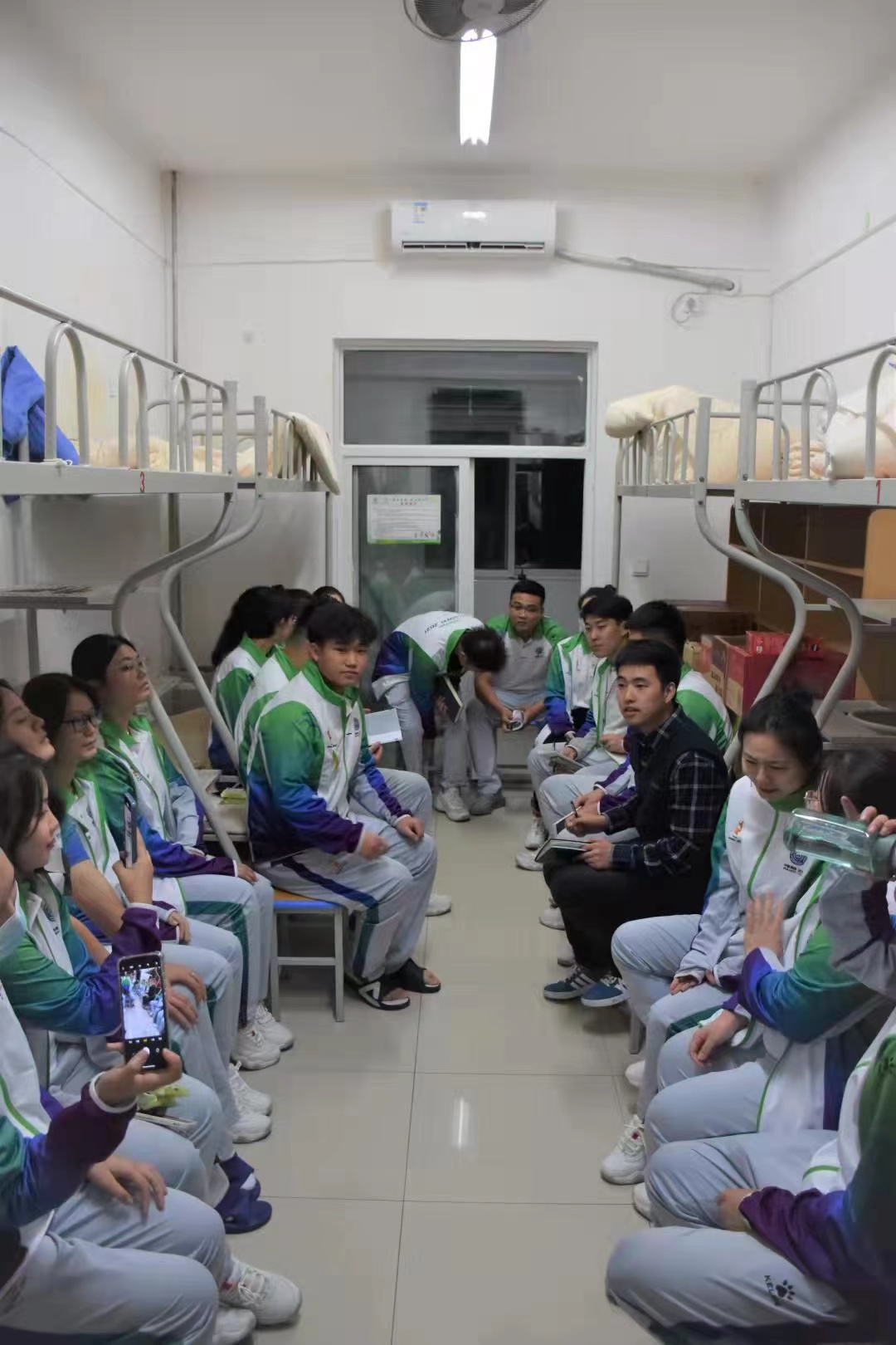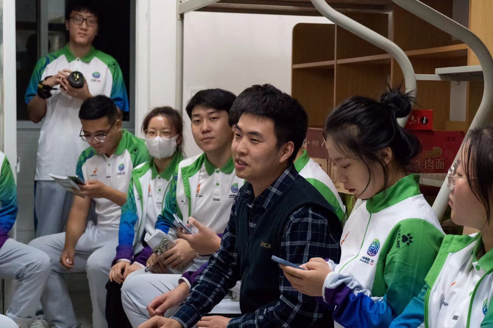 在封闭区会议室内,城院小秦宝们举行中秋茶话会,大家欢声笑语、促膝长谈。团小组讲到,“志愿者服务工作是辛苦的,但是相聚时间是快乐的,让我们一起过个温暖且有意义的中秋节”。男生组骨干代表刘浩楠说道“作为志愿者,我们一定会恪尽职守,将志愿精神持续发扬。”“我们女生加入十四运志愿者大家庭,就会拼尽全力去做好志愿服务保障工作”女生组骨干代表席怡婷说。