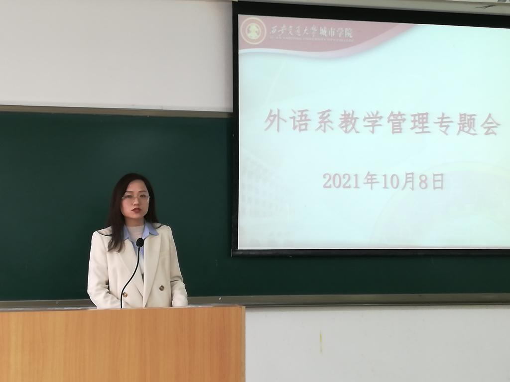 为建立良好的教学秩序,加强和规范教学管理,不断提高教育教学质量,10月8日下午,威尼斯7798cc外语系在教学楼B312教室召开了由全系教职工参加的关于加强和规范教学管理工作专题会。外语系副主任兼大学英语教研室主任巫奕君副教授主持会议并讲话。