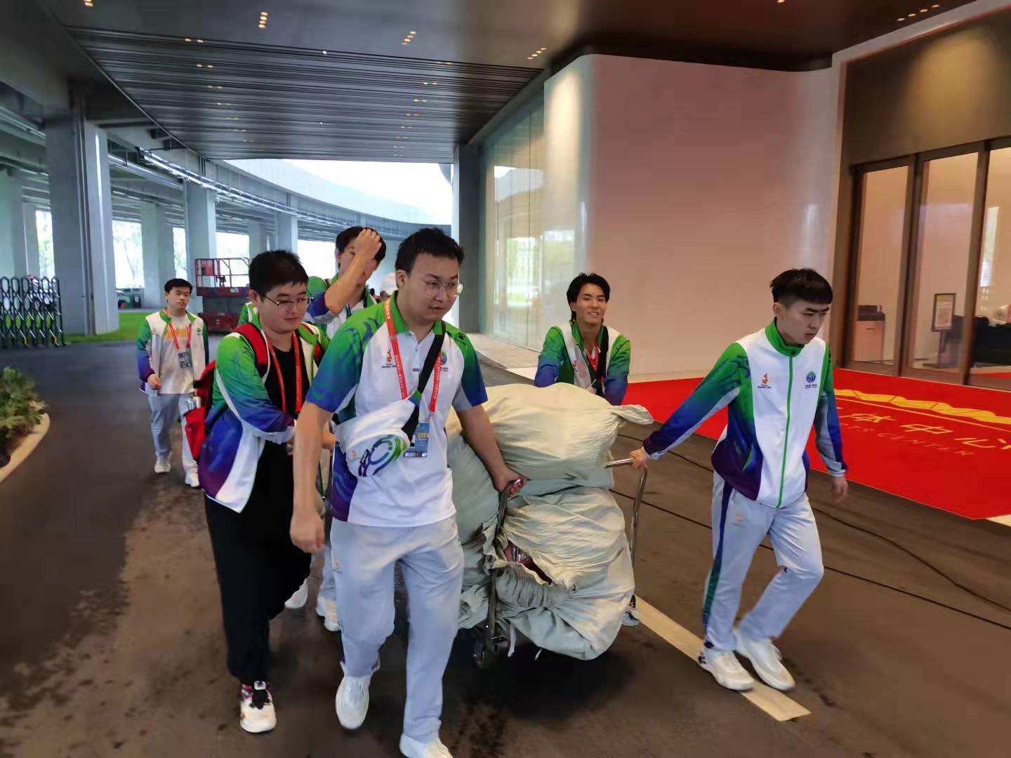 在开闭幕式期间,张博华所负责的工作岗位是物资分发、道具车的推移、随车安全员、导演组制片人助理。在道具推移中,张博华探索出了很多技巧,及时分享经验给威尼斯官网及兄弟院校志愿者们,使受伤人员大幅度减少。作为随车安全员,最张博华他记忆犹新的是,凌晨四点完成前一天任务后,刚要休息但又接到了早上7点的从未接触过的新任务,马不停蹄的参与到了接下来的工作之中,到达奥体中心后,疲惫的身体使他直接席地而睡。这样的新生活他没有后退,并出色的完成了每天的工作任务。在闭幕式期间作为导演组制片人助理,主要负责联系相关篇章的演出人员进行备场,以及道具的配送和工作餐的领取以及发放,配合导演组顺利完整闭幕式演出。同时他还担任了十四运驻地临时团支部组织委员,主要负责组织集合以及组织同学们进行工作、安检等。在服务结束后张博华说:“我特别感谢母校,当看到陈院长给我们录制的视频时,看到团委茹老师在开幕式前来看望我们时,我体会到了家的感觉,觉得志愿工作突然不那么辛苦了。我定会坚持秉承我院“尚德笃学,守正创新”的校训,努力学习,积极工作,为全面建设社会主义现代化强国而努力,为实现中华民族伟大复兴的中国梦无限奋斗!”