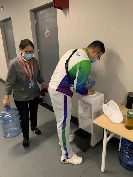 在开幕式期间,达封闭管理点后,经过短暂的休整,徐上开始了全身心的投入。为保证场馆安全,前往奥体中心前,全体同学需安检登车。在此过程中,徐上发现安检处划分不够细致,候车处车辆位置安排略显混乱。将情况反映至带队老师处后,老师也同样发现此问题的本部带队老师进行了周密商讨,最终决定由我院每日派遣十名登车管理员同学。徐上负责本次的带队,在工作细节商讨完备后,考虑到登车管理员同学每日需额外进行两小时左右的志愿服务工作,徐上提议将四十位可参与此工作的同学分为四组,实行轮岗制度。在后期更换岗位,徐上担任安全员工作总负责人,在他的安排下,威尼斯官网志愿者顺利、高效、有序的完成每天人员转移任务。