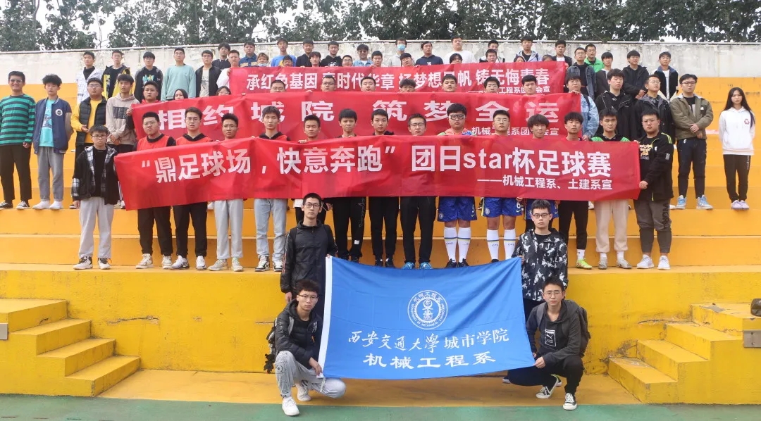 机械工程系团工委联合土建系团工委举办“鼎足球场,快意奔跑”足球赛——足球运动是一个集体项目,它需要团队的协作、集体的努力拼搏才能获取比赛的胜利,在这场“友谊第一,比赛第二”的足球赛中,更好地增进两个系之间的友好关系,培养学生吃苦耐劳、团结协作的优秀品质。