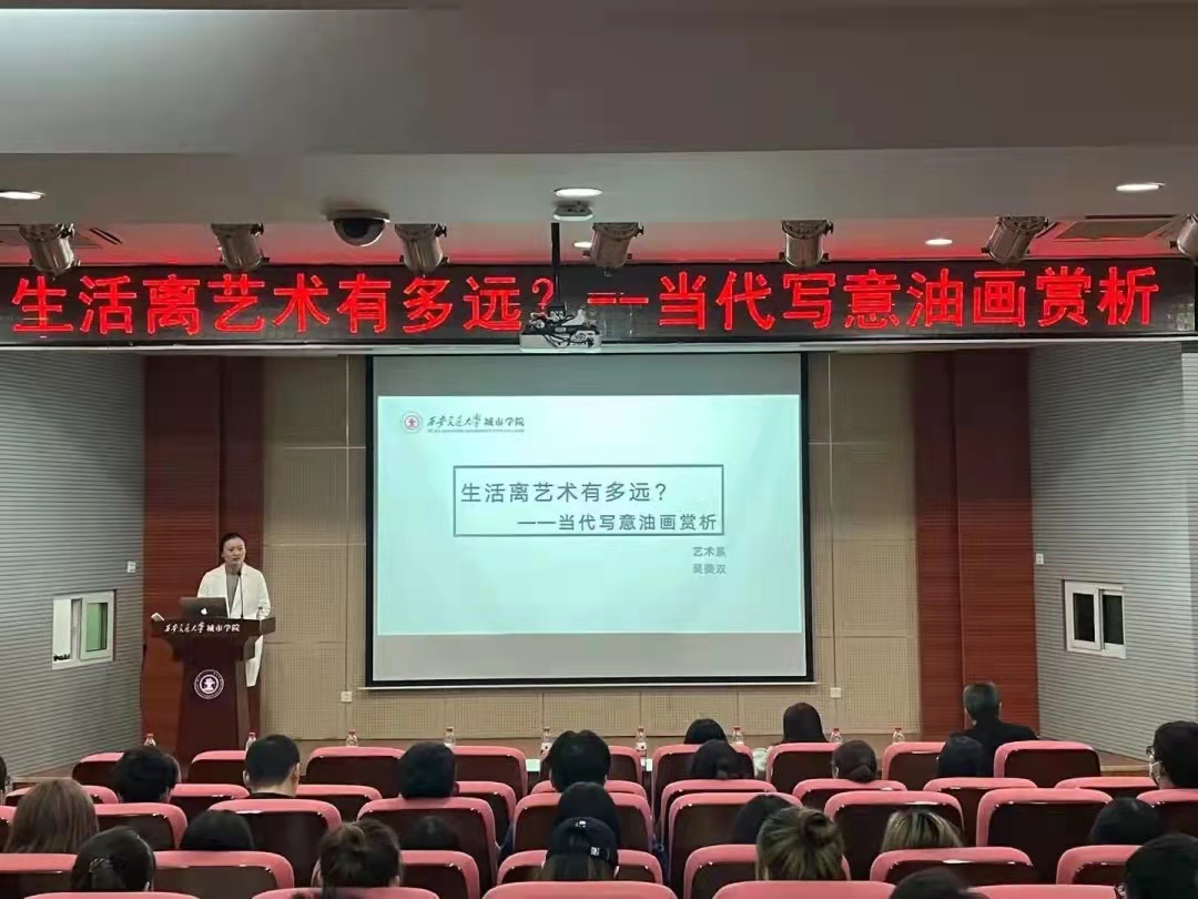 报告会上,吴美双以“生活离艺术有多远?——当代写意油画赏析”为题,从艺术与生活的关系出发,系统梳理了“艺术源于生活、生活无处不艺术”的相互关系,强调了用艺术去诠释自然、生活的规律。从微观和宏观的角度总结了艺术是人们了解自然、认识自然、融入自然,使生活中的审美、视觉和精神境界充分能够得到满足的重要载体;赵晶以“走进压花艺术---发现植物之美”为题,从压花艺术的起源、特点、基本工艺流程、国内外压花艺术的区别等方面为大家呈现了一场精彩的讲座。通过了解压花的历史、压花的基础工具和使用,学习如何采集和处理花材、保色的方法,储存的技巧等;夏宇佳以“从西安斡尔垛遗址看元代王宫规划”为题,介绍斡尔垛遗址的选址、规模和建筑布局开始,逐步展开了对元代皇宫规划设计的分析,包括布局的特征、规划设计的手法等内容,最后提出了一些对遗址的保护与利用的思考,引发在座者思考该如何正确看待历史、文物古迹以及和我们当今生活方式的融合。