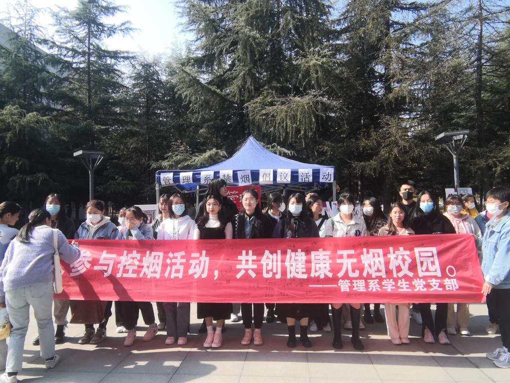 为呼吁全院师生养成健康良好的生活习惯,普及大家对禁烟控烟常识的了解和对吸烟危害的认识,创建无烟校园,11月2日、3日管理系学生党支部共同举办了“人人参与禁烟活动,共创健康无烟校园”主题禁烟倡议活动及线下海报展。