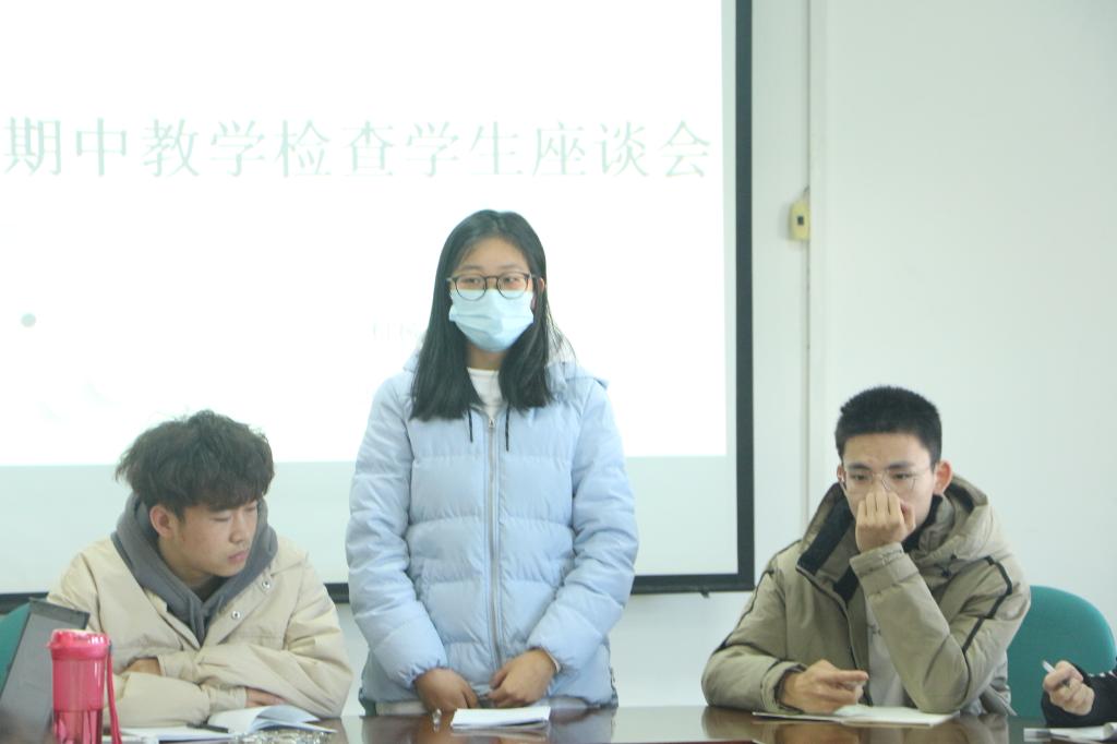 座谈会上,师生代表齐聚一堂、畅所欲言,不同年级的各班学生代表依次发言。针对所在的年级以及班级的整体学风情况、学生学习状态以及目前面临的四级考试、考研、找工作等方面提出了一系列问题,同时也对后期班级学习计划和对任课老师教学、学生管理的意见和建议进行了汇报和交流。在场的相关老师对学生们所提问题一一作了解答,并与同学们展开了热烈讨论。