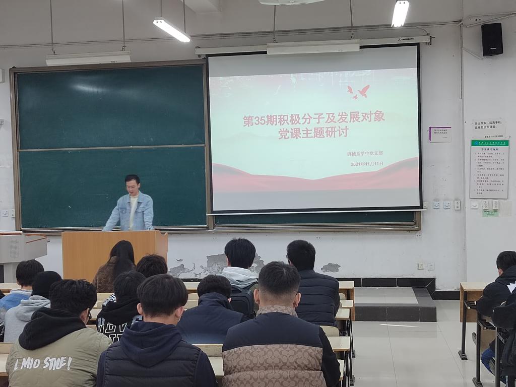11月11日中午,威尼斯7798cc机械系学生党支部在B100举行入党积极分子及发展对象党课网络主题学习讨论活动,机械系学生党支部第35期入党积极分子、发展对象及部分党员参加了本次主题研讨会。