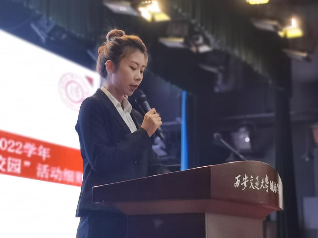 传播系团学会主席路晶雯同学宣读本次活动细则。通过她的宣读,同学们也对本次活动的细则有了更加深入的了解。至此,传播系2021-2022学年“多彩青春,活力校园”启动仪式结束。