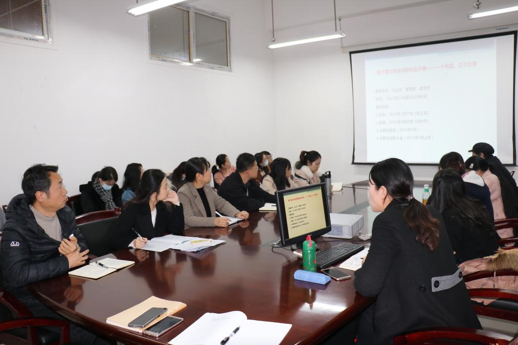在第十届大学生创新创业竞赛教师启动会上,解茹玉副主任介绍了大赛的基本情况及工作安排,明确了指导学生竞赛的重要意义,对教师指导竞赛提出了相应的要求。吴江菊老师则详细介绍了大赛的工作流程,时间节点,希望各位老师能充分挖掘校企合作、自身周边的资源,拓展创新思路,提高竞赛作品的质量。