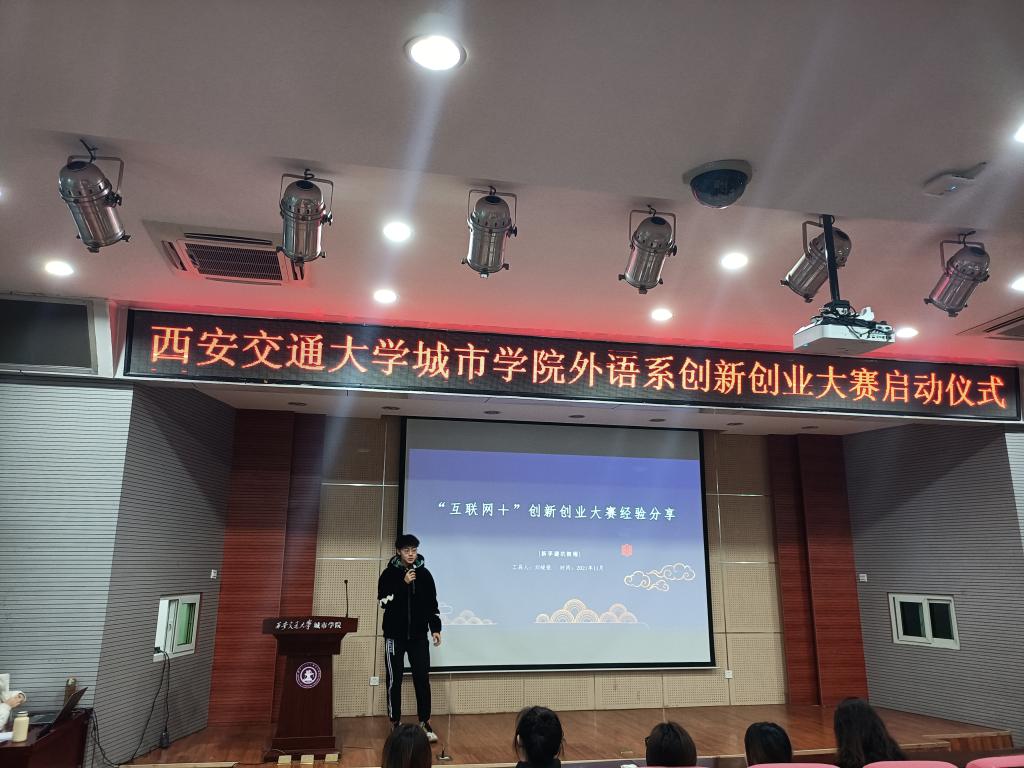 为进一步激发大学生创新创业热情,提高大学生创意、创新、创造、创业的意识和能力,引导、鼓励广大学生踊跃参加创新创业活动,真正落实教育部以赛促教、以赛促学、以赛促创要求,外语系于12月1日在F100举行创新创业大赛启动仪式。本次大会由外语系团工委书记刘牧原、外语系创新创业负责人韩蓉发起,英语教研室付渝、外语系主席团陈欣乐、郗悦靓、杨雪等学生代表共同主持,参会人员为2020、2021级全体学生。