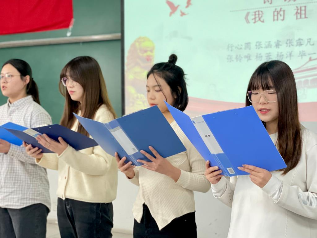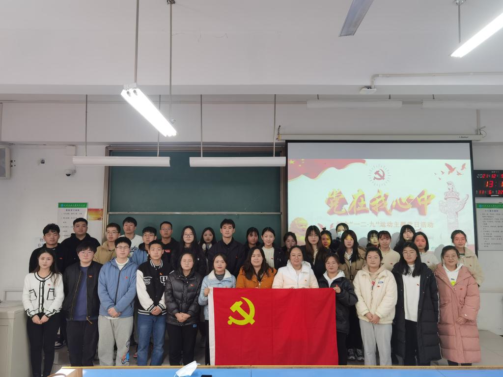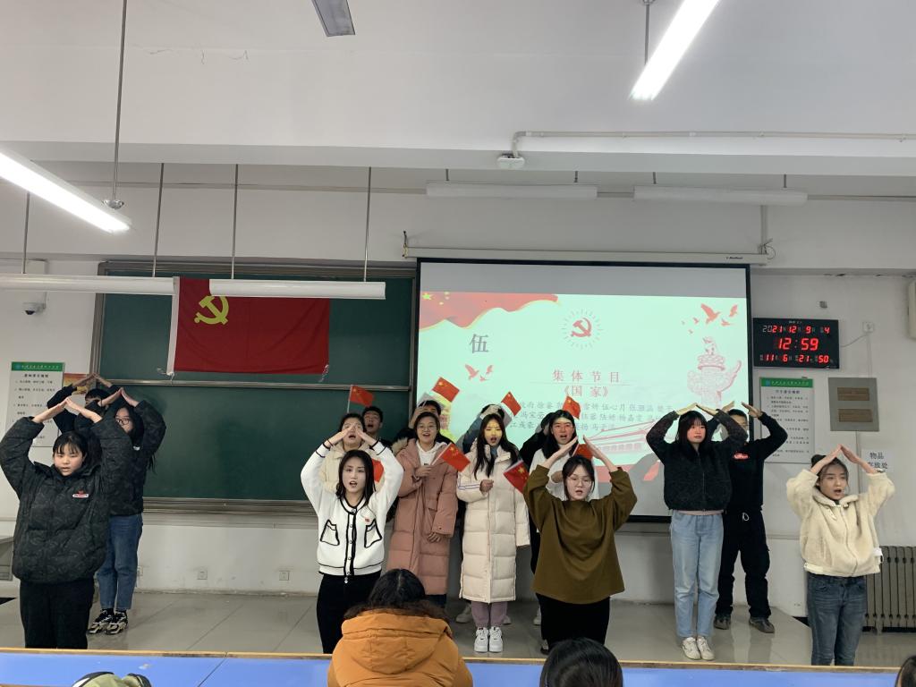 活动伊始,由丁晨和薛智超带领大家一起重温党史,讲述了在民族生死存亡之际,爱国青年学生组织发动了“一二·九”抗日救亡运动促进了中华民族的觉醒,“一二·九”精神始终激励着一代代青年学生奋发前行,感染着现场的每一位党员同志。接着,由支部八位党员带来了诗歌朗诵《我的祖国》,用真挚的情感讴歌伟大的党和人民,用实际行动践行“请党放心,强国有我”。随后,微党课《七一精神》、《井冈山精神》等内容让同学们身临其境地回到历史长河中,学史明理、学史增信、学史崇德、学史力行,使大家再一次深刻感受到了大学生“誓死不做亡国奴,英勇救国”的热血激情,深刻认识了中国共产党的那段坎坷又光辉的峥嵘岁月,激励着在场的党员们赓续红色血脉,争先发挥党员先锋模范作用。随后由全体党员共同演绎的歌曲《国家》将活动氛围推向高潮,通过歌声唱出心中的爱国之情,唱出了国家与人民血肉相连的浓浓情感。