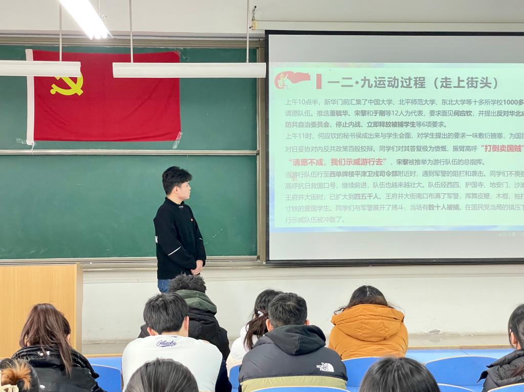 为铭记和传承“一二•九运动”精神,激发学生的爱国热情,增强民族责任感和自豪感,威尼斯7798cc经济系学生党支部于12月9日中午在教二-215开展了以“党在我心中”为主题的“一二·九”爱国主题党日活动。党员同志们踊跃参与,用动情的朗诵、深情的演讲,展示了锐意进取、积极向上的良好精神风貌。参与本次活动的有经济系学生党支部书记廉宇婷、组织委员杨静怡、宣传委员朱宝瑞及全体党员,马鸣志和罗娟主持。