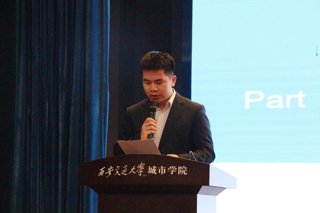 中国二冶集团有限公司陕西分公司人力资源部部长吕俊峰代表评委发言。吕部长回顾了一直以来与我院的深度合作情况,并对新时代大学生在走入职场提供了几点建议,尤其是从企业的角度出发为在场学生提供了很好的启发。