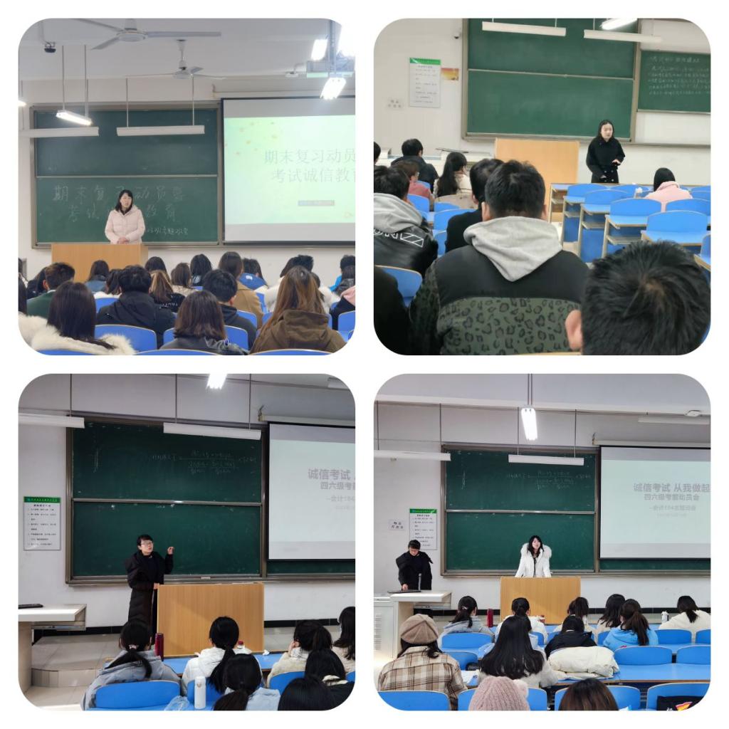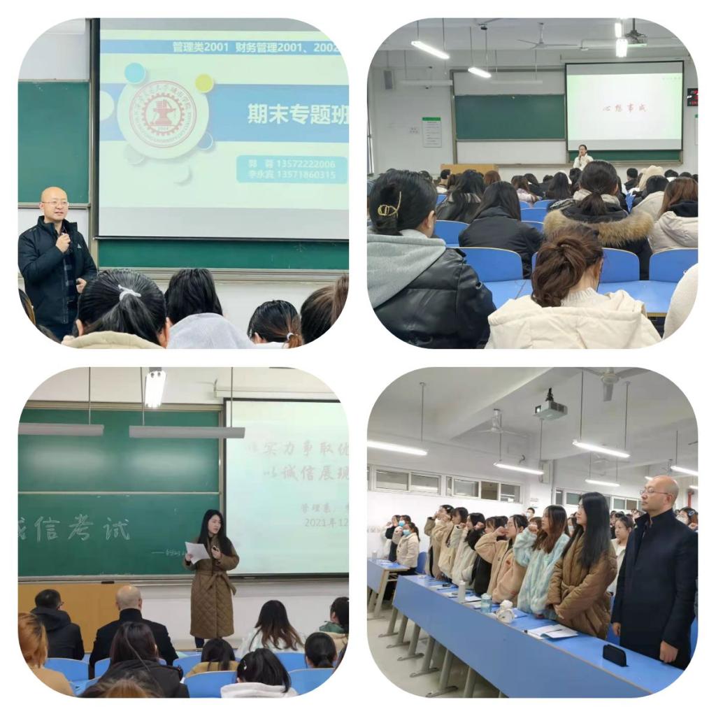 为严肃考风考纪,营造良好的学习氛围,12月13日至16日,管理系各年级班主任、辅导员老师组织各班学生召开了大学英语四六级考试诚信教育暨期末考试动员会。