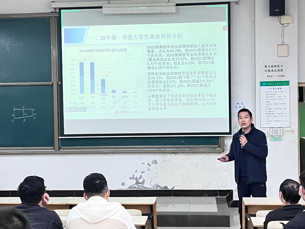牛老师统计分析了2022年第一季度全国大学生的就业现状,以及考研、公考报名与录取情况,并根据社会已经公布的数据对比分析总结我系2022届毕业生在就业与考研等过程中存在的问题。同时,结合我系往届毕业生的去向和发展,及2022届中国高校毕业生就业意向行业与企业用人需求,指出建筑类相关专业的就业优势,鼓励大家在“最难就业季”背景下,把握好自己的核心竞争力,确定职业理想,了解职位要求,及时调整融入,积极参与应聘,抓住春季招聘高峰期,力求找到自己满意的工作。