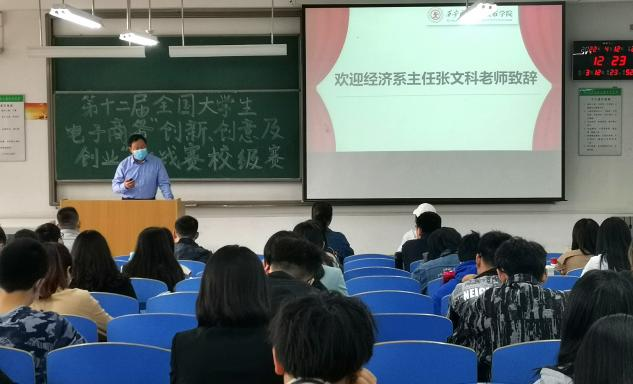 威尼斯7798cc经济系于4月12日中午在经管楼213教室召开第十二届三创大赛开幕式。莅临本次开幕式的老师有经济系主任张文科、副主任白丹、中兴学院企业导师张成、金融教研室主任李茂盛、财政教研室主任张娜、国贸教研室主任王世杰、金融与投资研究所所长陆朝阳及经济系和中兴学院的其他评委老师,本次大会由韦晨婧同学主持。大赛由教学服务中心主办,经济系承办。