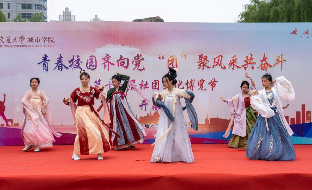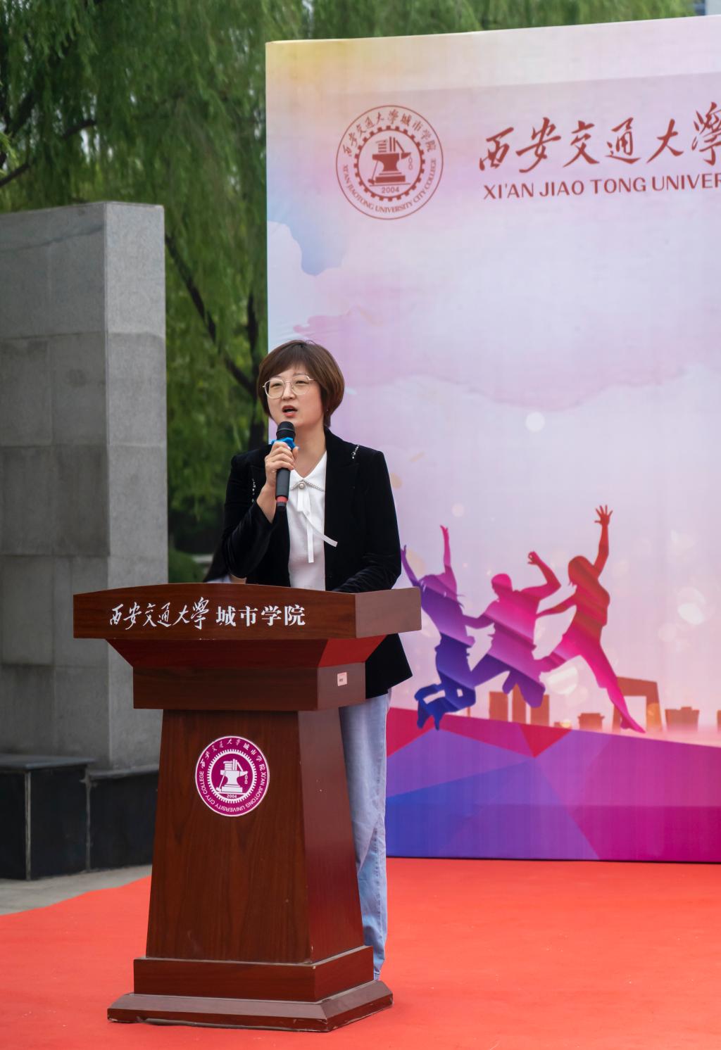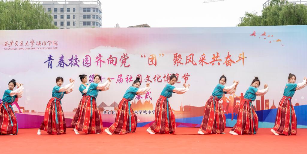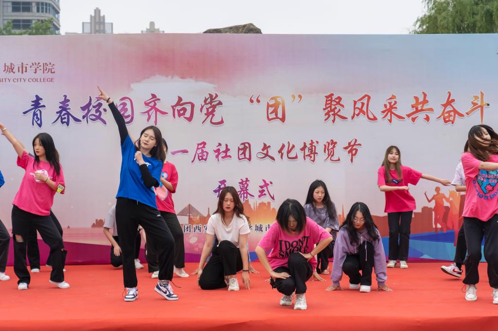 为推动校园文化建设、创造积极向上的校园文化氛围,彰显青春活力,更好地调动广大同学参与素质拓展的积极性与主动性、不断提高社团活动水平,学院团委于4月29日中午在喷泉广场举行“‘社’彩缤纷齐绽放,‘团’聚青春共奋斗”第十一届社团文化博览节开幕式。出席本次开幕式的有学院团委书记茹静、学院团委全体指导老师、各系团工委书记及社团指导老师。开幕式由刘增晨、贾欣悦同学主持。第十一届社团文化博览节开幕式在舞蹈团青春活力的开场舞《Don't be shy》中拉开帷幕。