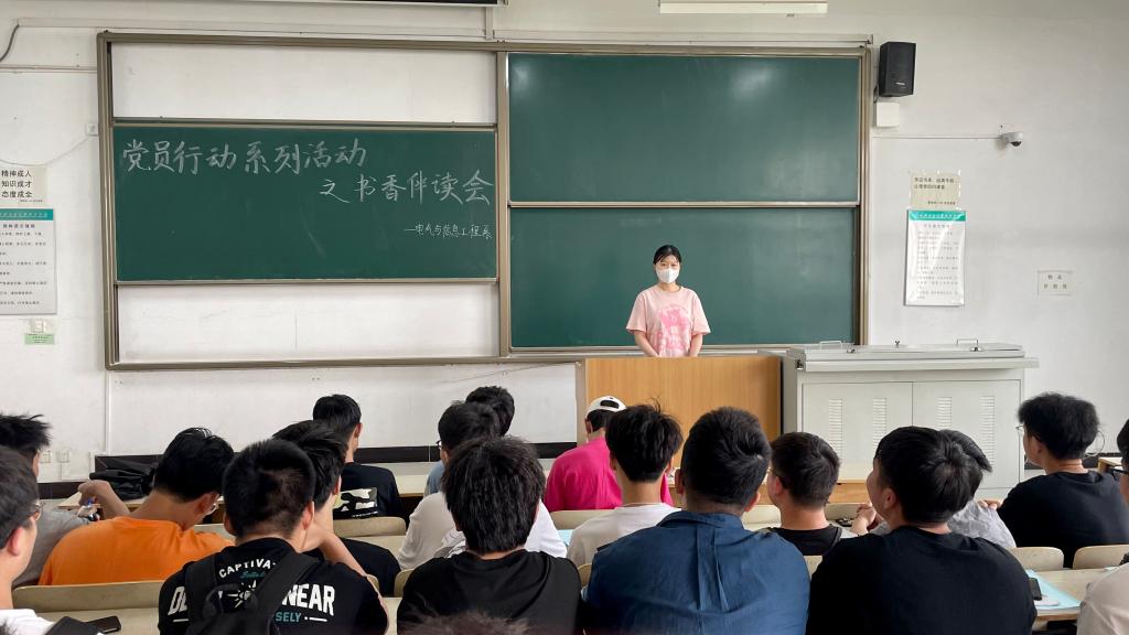 为充分发挥党员先锋模范作用,以朋辈教育力量引导学生养成爱读书、读好书、善读书的良好习惯,电气与信息工程系学生党支部举办“党员行动”系列活动之“书香伴读”活动,支部成员成立伴读团,每日7:50-8:10对2021级学生的早读进行组织安排,经典名著、主题演讲等主题安排一方面有助于学生党员时刻牢记自己的党员身份,加强党员意识,做好表率;另一方面,也给2021级新生上了一堂生动的思想政治课,进一步激发了他们的爱国情怀,激励他们更加坚定理想信念,以昂扬的姿态面对未来的生活与学习。