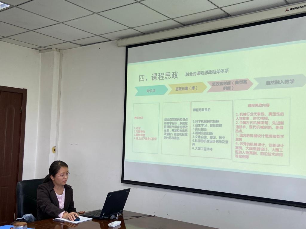 会议第二阶段,过程教学建设中期成果汇报。任晓莉和门静分别结合各自课程组目前开展情况,分享了《机械设计基础》《机械制图与AutoCAD(2)》两门课程设计思路、教学方法以及融入思政教育元素的实践探索和思考。