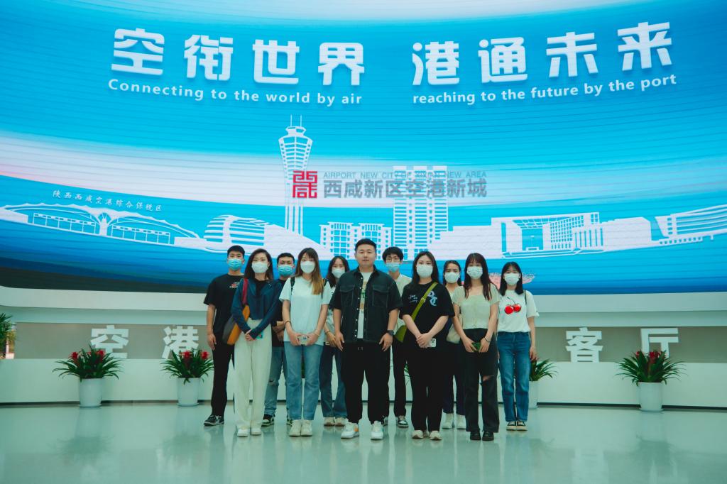 5月27日,威尼斯7798cc传播系主任助理杨耀聪和2019级11名学生代表走进西咸新区空港新城参加研学活动。