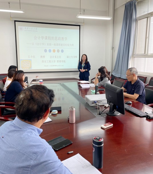 为全面落实立德树人的根本任务,实现知识传授、价值塑造和能力培养的多元统一,不断提高教育教学水平,王海民名师工作室于9月21日下午2:30在教2-225会议室开展课程思政教学法交流活动,邀请西安工程大学管理学院王小红教授开展题为“会计学课程的思政教学”的主题讲座。本次活动由陕西省教学名师王海民教授主持,名师工作室主任专家张文科教授以及后备名师解茹玉、赵秀英、惠春丽、屈雯、冯茜、李霁晨参加了会议。