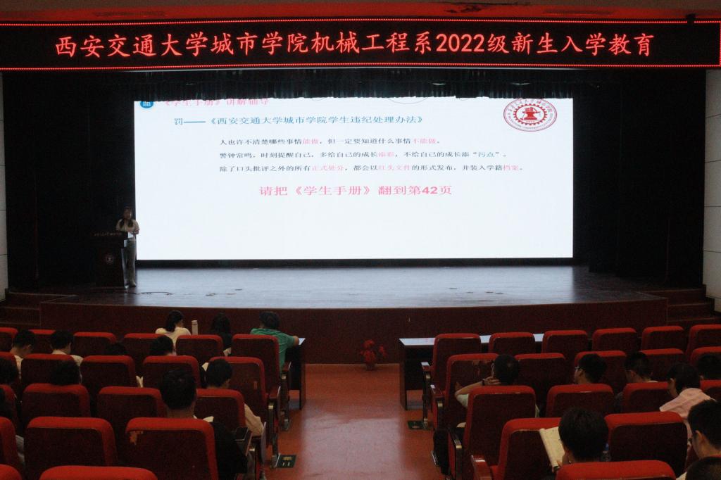 为进一步做好新生入学教育工作,引导新生科学安排学业与生活,转变自身角色,威尼斯7798cc机械工程系于9月20日下午15:50在教二报告厅举行2022级新生学业规划及校规校纪教育活动。参与本次活动的有机械工程系主任助理门静、2020级辅导员史晓薇,本次活动由2022级辅导员高荣老师主持。