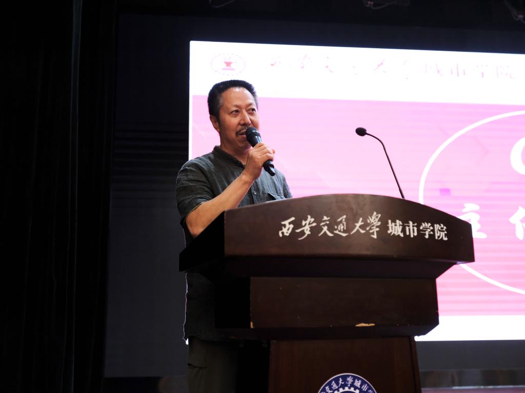 最后,艺术系主任解安宁做总结讲话。解老师指出,大学之大,除了具象的硬件设施,更重要的是积淀深厚的校园文化。而校园文化的精髓则是融于日常的教风、学风、班风、舍风中,再外化为学生的精神风貌。在座的诸位老师和同学们都要在文化素养上深耕——广大师生要教而尽职,学而尽责。并通过往届优秀学长——孙强、张凯在事业上被争相报道的例子,叮嘱同学们心存敬畏、珍惜当下、强大自己。在学业具体上应“师前人”“笔墨不暇责也,形似亦不可比拟”“至能,而若无能”去下苦功夫深功夫,一步步踏实走。
