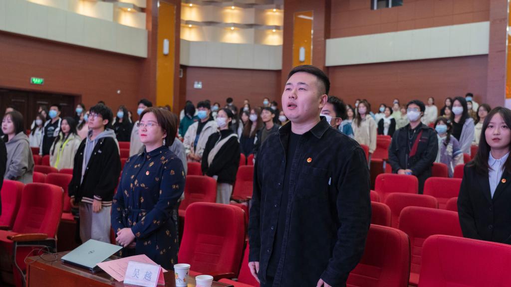 会议伊始,全体奏唱团歌。随后,团学工作负责人杨月为同学们讲解“新时代团学干部的使命与担当”。杨月从“对党忠诚”“担当实干”“群众路线”“廉洁自律”四个方面展开论述,明确了做好新时代团学干部的四个关键点,号召团学干部用自身的实际行动书写使命与担当。
