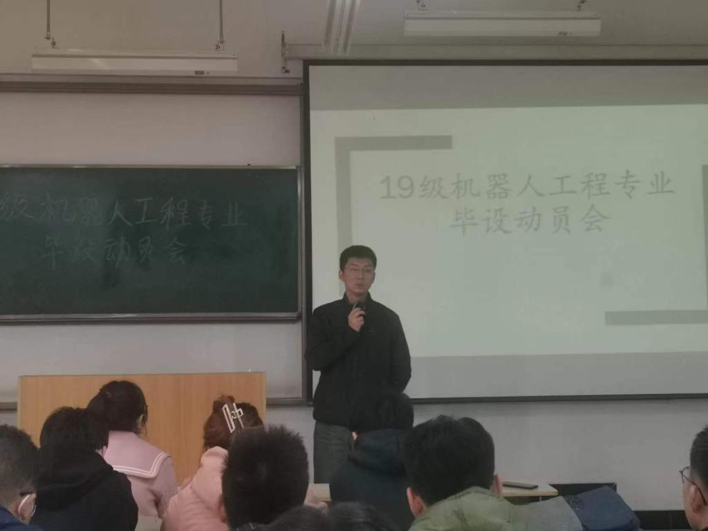 动员会分两个阶段进行。第一阶段由各专业负责人通报本专业相关部署工作,分别从毕业设计目的及意义、任务、要求及时间安排等方面做了详细讲解,要求全体学生在思想上要高度重视,端正态度,认真准备,提早动手合理规划;第二阶段,指导老师代表针对毕业设计工作内容、关键时间节点及注意事项进行细致说明,要求学生能够全面运用所学知识,发挥自己主观能动性,主动研读题目背景,查阅文献,严格遵守毕业设计的格式规范,做到认真撰写、诚信撰写,坚决杜绝抄袭等一切学术不端行为,保质保量按时完成毕业设计各阶段任务。
