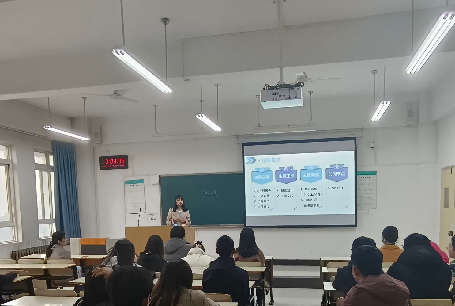 学生工作负责人吴昊翔全程参与,对管理与纪律方面做了强调,对学生毕设期间的请假制度进行说明,希望大四学生与指导老师保持实时沟通,认真执行老师们布置的各项任务,为大学学业画上一个圆满的句号。