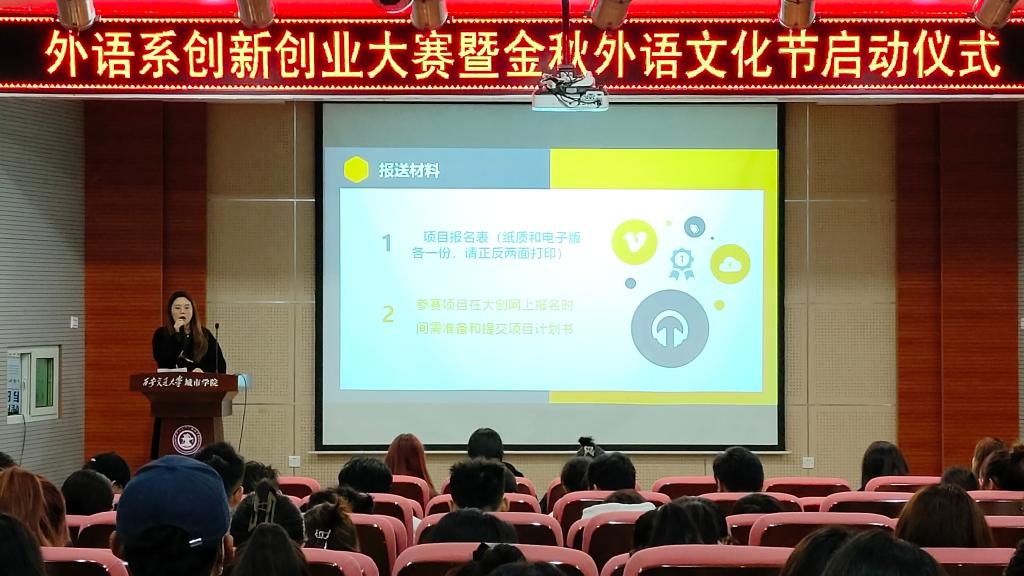 为进一步激发学生创新创业热情,提高外语系学生创新、创意、创造、创业的意识和能力,引导、鼓励广大学生走自主创业之路,外语系于11月16日在F100举行第十一届大学生创新创业大赛启动仪式。外语系学生工作负责人吴丹,团工委书记韩蓉,大一至大三全体班委出席本次会议。