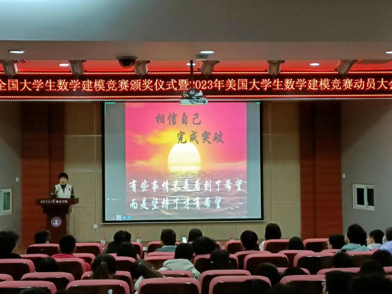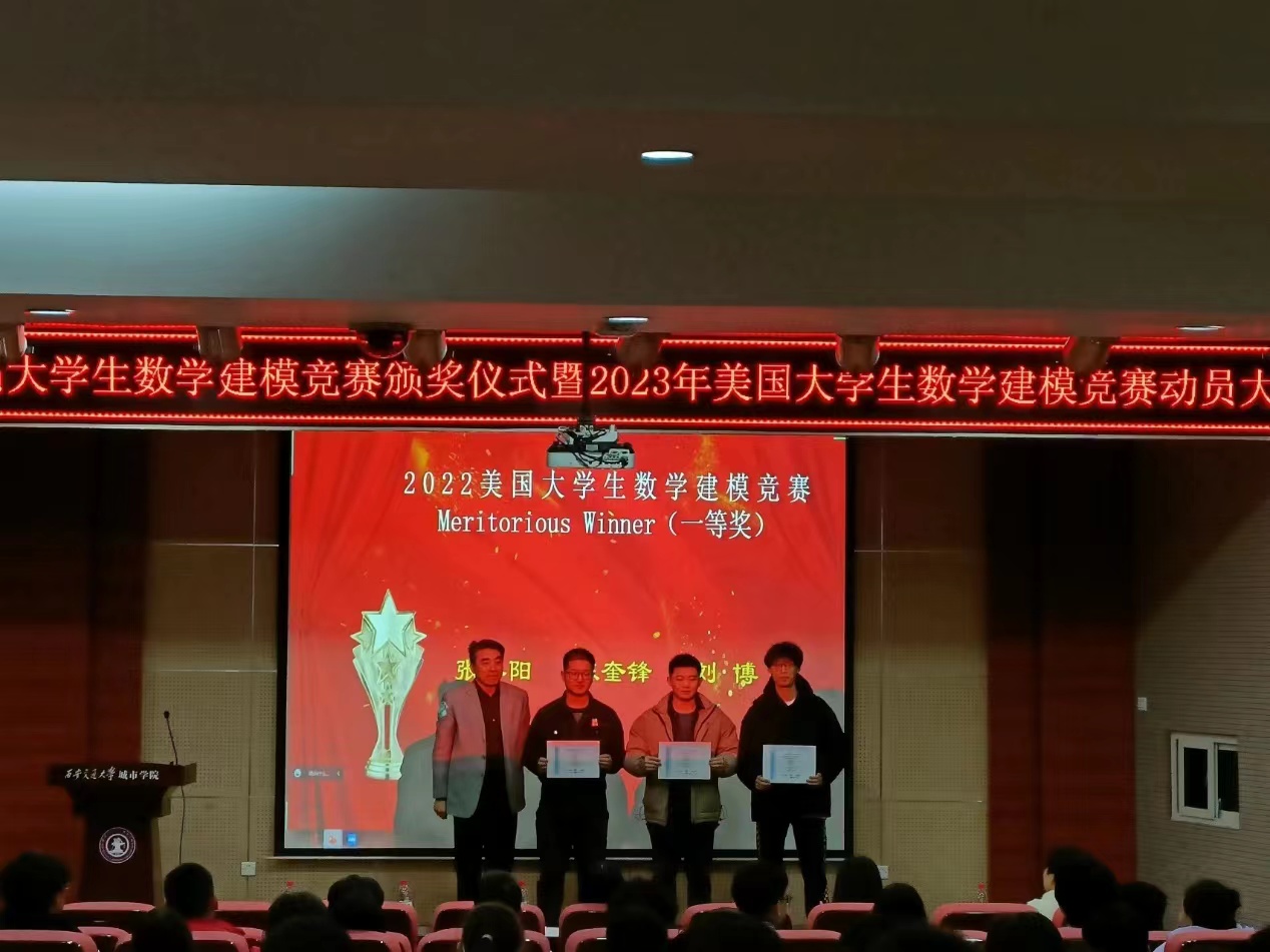 11月24日,由数学教学部、数学建模协会组织,在F100会场举行了2022年度数学建模竞赛表彰暨2023美国大学生数学建模竞赛动员大会。参加本次会议的有学院副院长朱旭,校团委茹静书记、数学教学部主任张世梅教授、数学教学部指导教师和2022年数学建模竞赛获奖学生代表及各系部分学生。会议采取线上线下相结合的方式进行。