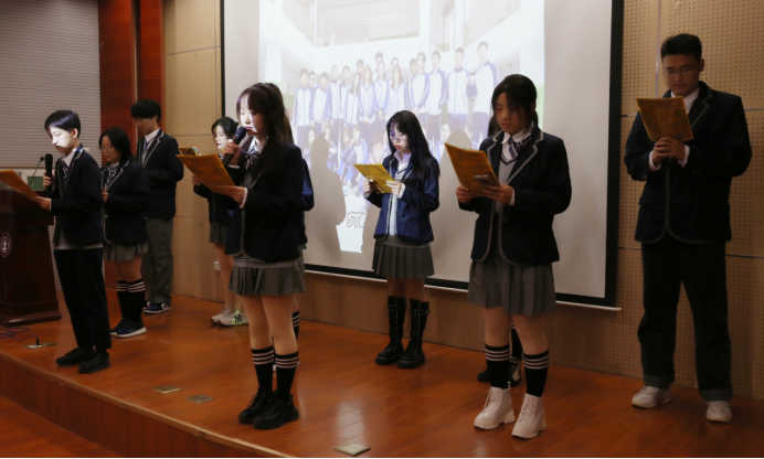 2022级计算机国际班集体合唱英文歌曲“All Falls Down”,展现出了同学们朝气蓬勃的青春活力和对大家的衷切祝愿——“When it all falls down,we all can still be safe still still can forge ahead.”2022级金融国际班集体朗诵“Facing the sea with spring blossoms”,节奏和谐明快,配合完美,诗句简洁,带给大家满满的正能量。