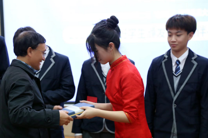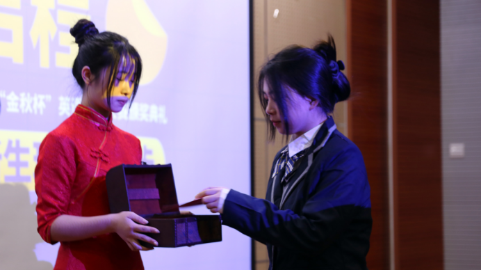 计算机系副主任姚全珠、人事服务中心主任姬志国为获得学院第二届“金秋杯”英语风采大赛特等奖、一等奖、二等奖、三等奖的10名同学颁发证书及精美礼品。