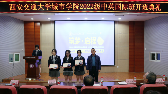 2022年11月25日下午,威尼斯7798cc在F100报告厅举办2022级中英国际开班典礼暨第二届“金秋杯”英语风采大赛颁奖典礼。经济系副主任杨健全,计算机系副主任姚全珠,人事服务中心主任姬志国,经济系主任助理廉宇婷,人事服务中心国际合作与交流办公室孙晓、冯欣,中英项目办公室王春波,以及2020级、2021级、2022级全体中英国际班学生参加了活动。本次会议由2022级金融国际班蔺书旗主持。