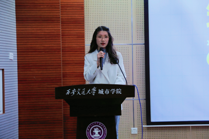 2021级计算机国际班学生代表戚雨欣,用英文进行了发言,希望学弟学妹们可以把握当下,静心学习,做到学有所获;也希望国际班大二、大三的同学们不负选择,在最好的年华拼尽全力,做一名有责任、有担当、有使命的城院新青年。