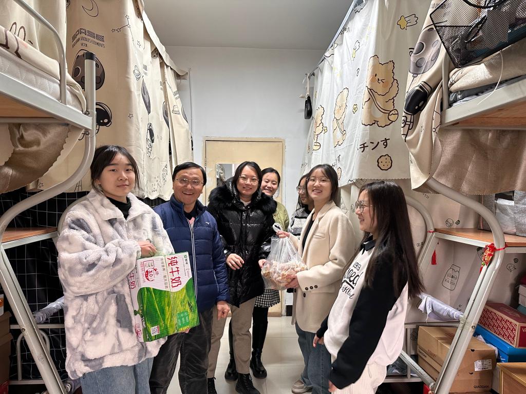 通过走访慰问宿舍,老师们关切问候毕业生复习备考情况、求职就业进程、未来规划,认真倾听同学们的心声,耐心给予解答。同时与学业、就业困难学生进行一对一谈心谈话,以专业指导、心理疏导等多方面予以关怀,帮助大四毕业生明确学习及职业规划。张文科主任指出,现已进入考研、考公冲刺阶段,鼓励同学们在复习备考中调整心态、提高效率、劳逸结合,以饱满的精神状态全力以赴参加考试,同时结合专业和行业发展动态,为毕业生就业给予一定的指导;杨健全副主任叮嘱毕业生要随时保持积极向上的求职心态,走出宿舍积极参加面试,迈好走向社会的第一步。老师们的关爱一如既往,并将精心准备的“毕业班助力包”及老师们亲自书写的“包”你上岸、一“研”为定、“职”为有你等祝福寄语的贺卡送至毕业生的手中,春风化雨,以笔笺心。大家也纷纷表示将带着这份温暖努力迎接备考、积极就业,以优异的成绩回报学校的培养和关怀,奋力逐梦!