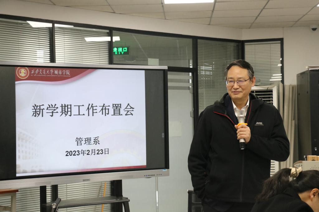 新学期伊始,管理系全体教职员工于2月23日上午在教2-300召开新学期工作会议,安排部署本学期的工作任务。会议由郭关科常务副主任主持。